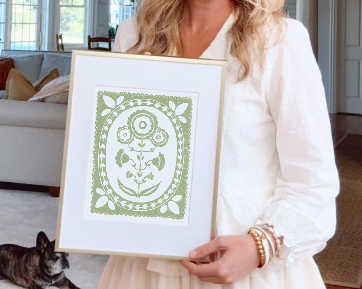 Bring timeless charm and modern minimalism to your walls with this bold green-and-white anemone design. Originally hand-carved and stamped as a traditional block print, the artwork is now professionally reproduced as a fine-art giclée print—archival inks on thick, museum-quality paper—for rich blacks and crisp detail that last a lifetime.