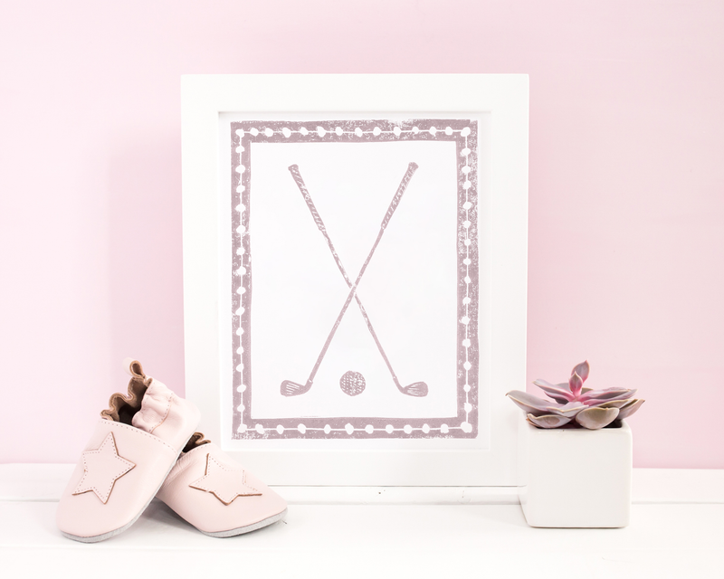 Mauve and White Golf Clubs Art Print Botanical Wall Decor