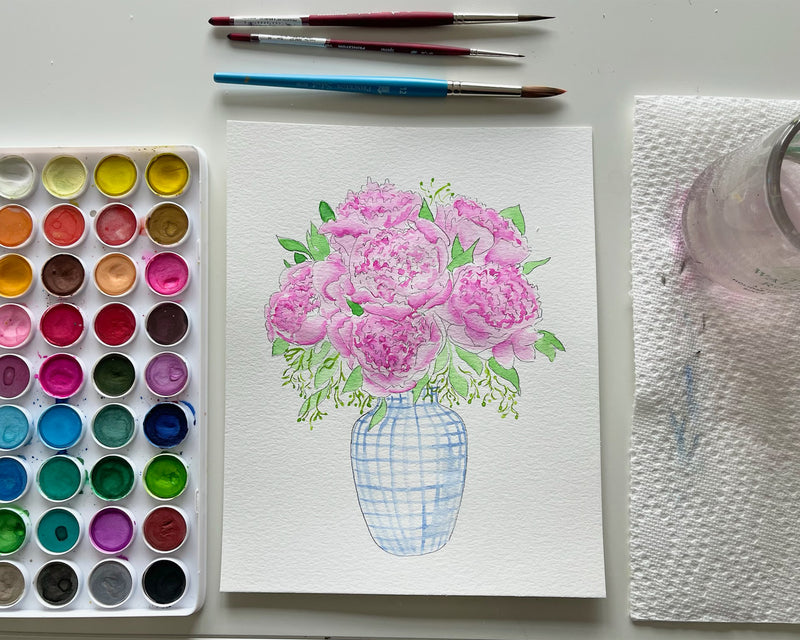 Watercolor Peonies Painting Sheet