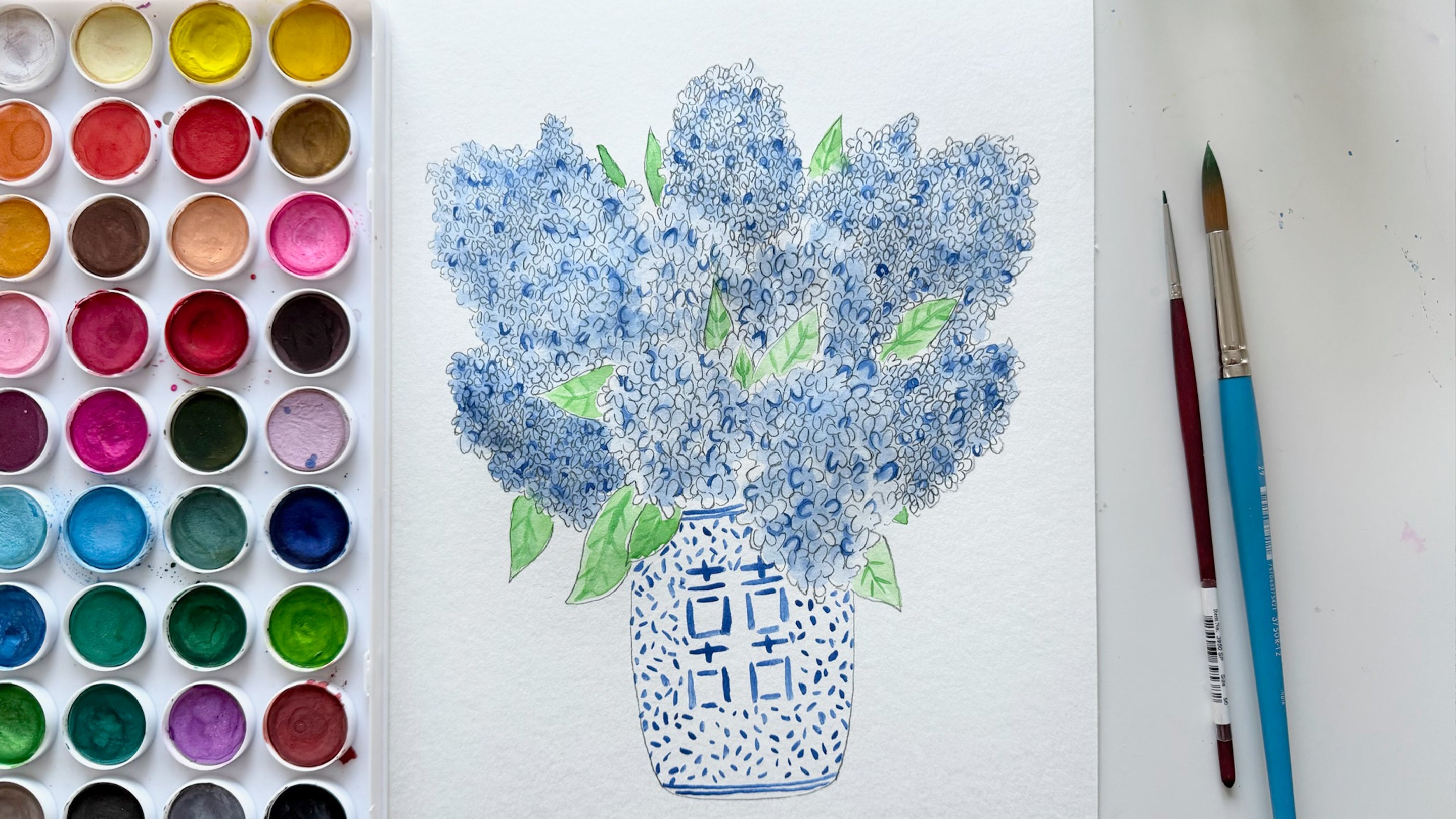 Watercolor Hydrangea Painting Sheet